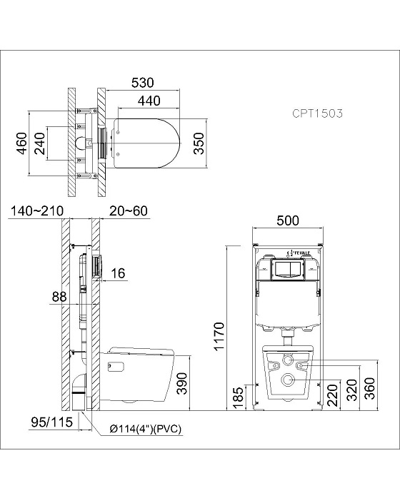 Bồn cầu treo tường Caesar CPT1503 (Nắp đóng êm)