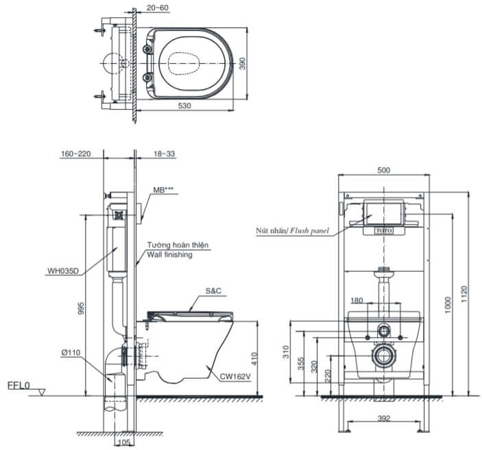 Bàn cầu treo tường URBANIQUE, nắp đóng êm TC384CVK