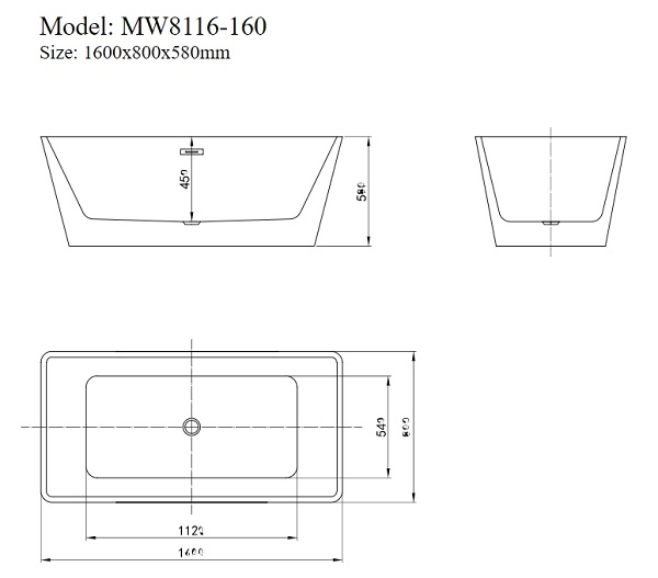 Bồn tắm đặt sàn Mowoen MW8116-160 (1600x800x580mm)