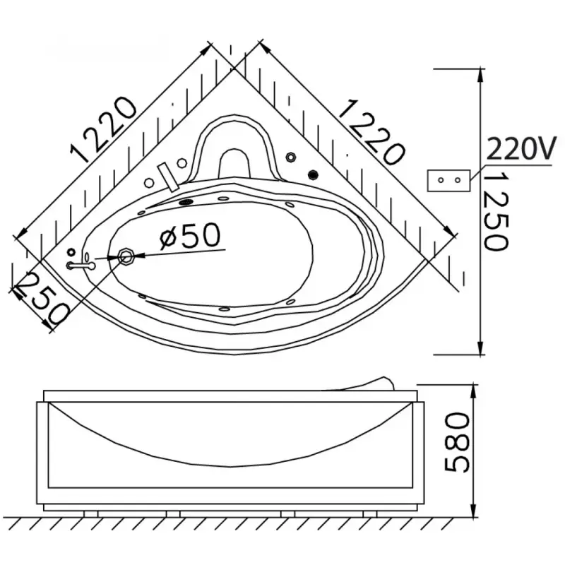 - Kích thước: 1220 x 1220 x 580 mm (D x R x C)