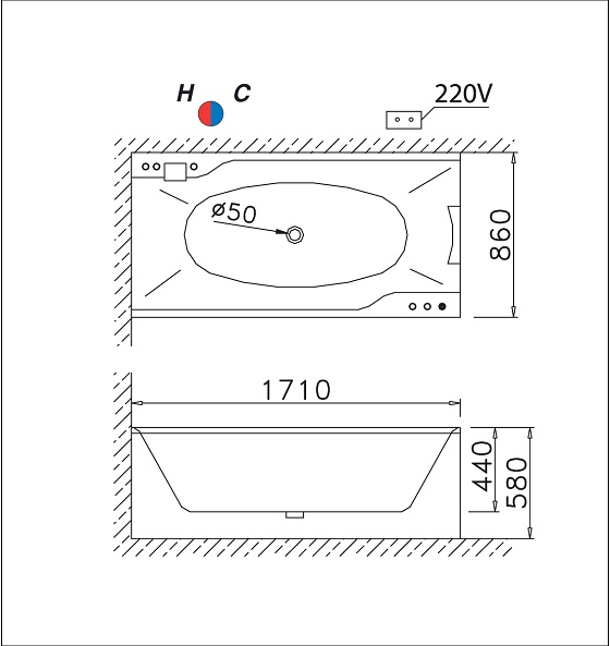 Vị trí cấp nước nóng lạnh cách nền hoàn thiện 300mm