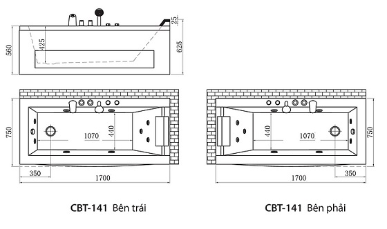 Bồn tắm massage Clara CBT-141 (1700x750x465mm) số lượng