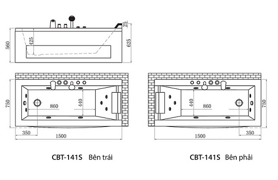 Bồn tắm massage Clara CBT-141S (1500x750x465mm) số lượng