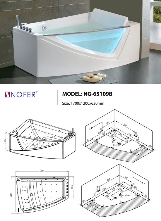 Công suất bơm massage: 1,1 kw