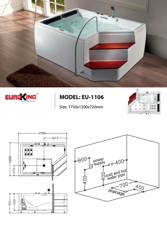 Hệ thống massage xoáy nước hiện đại xung quanh lòng bồn, với các tia nước massage thủy lực tác động sâu vào vùng lưng hay nhức mỏi của chúng ta