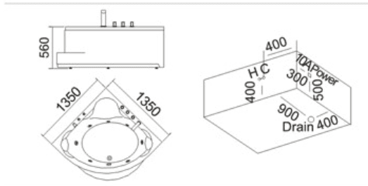 Bồn tắm massage góc MIKEN 3044 (1350x1350x560mm)