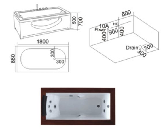 Bồn tắm massage MIKEN 3066 (1800x880x700 mm)