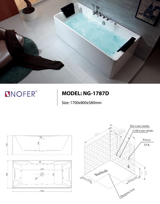 Bồn tắm massage Nofer NG-1787D (Acrylic-1700x800x580mm)
