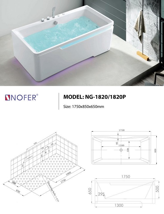 Bồn tắm massage Nofer NG-1820 (Acrylic-1750X850X650mm)