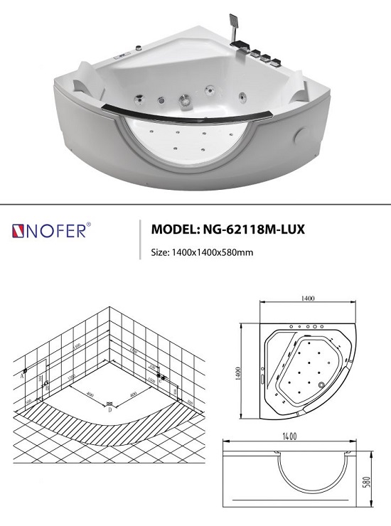Chiếc bồn sẽ sử dụng hệ thống massage xoáy nước 5 mắt lớn cùng tia thủy lực. Để phun một dòng nước tác động mạnh mẽ đến vùng lưng của bạn.