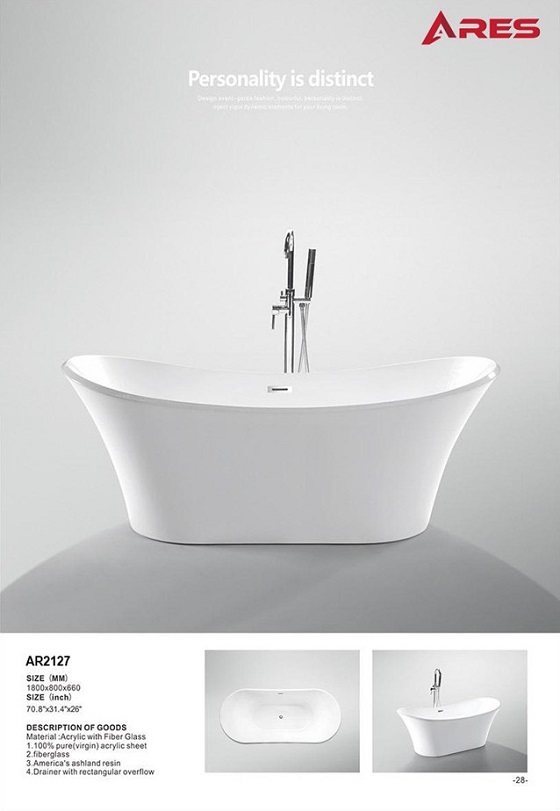 Bồn tắm nằm nghệ thuật ARES AR2127 (1800x800x660mm)
