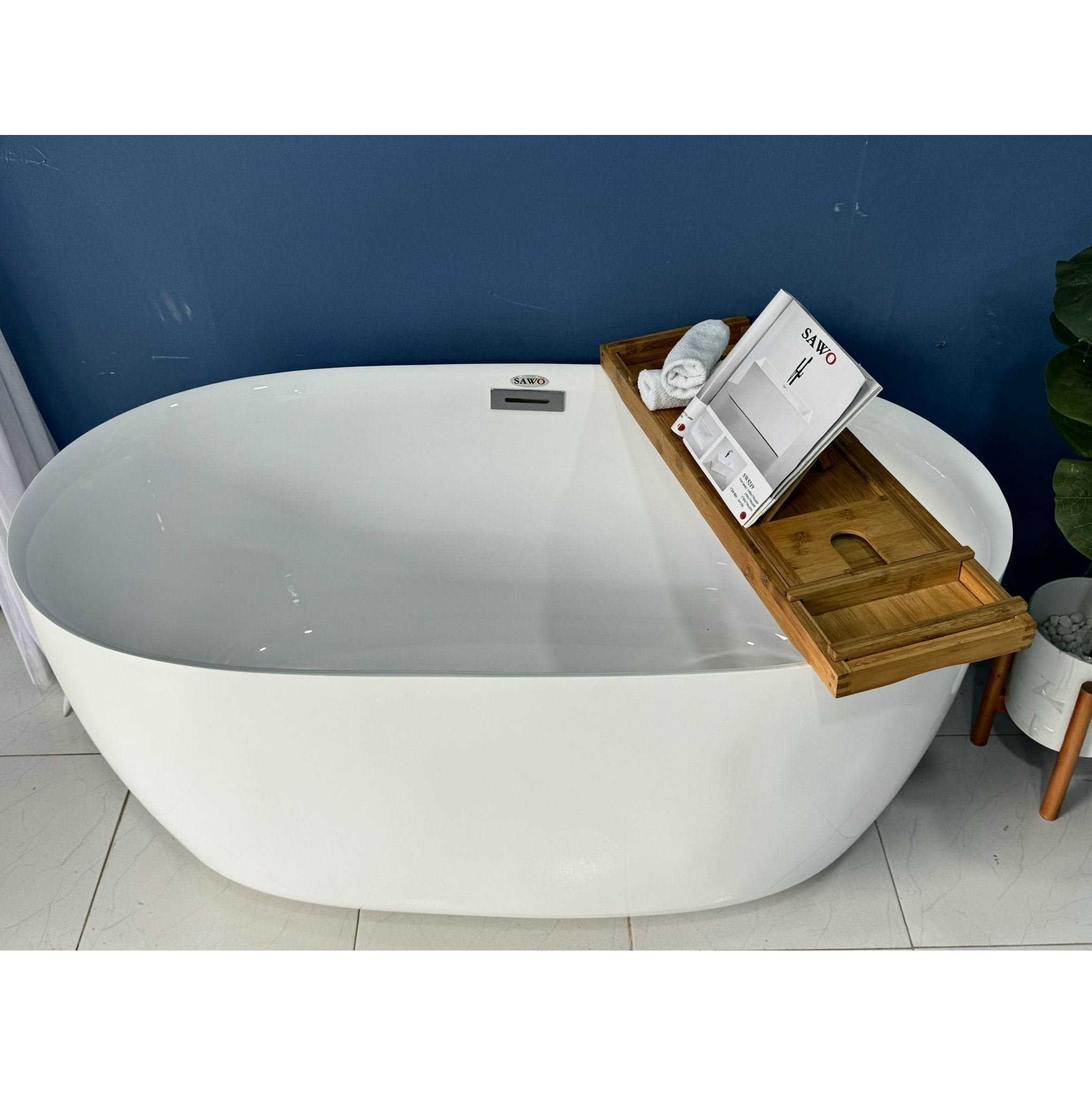Bồn tắm ngâm đặt sàn hình ovan trứng SAWO SW5713 (Acrylic-1280x700x590mm)