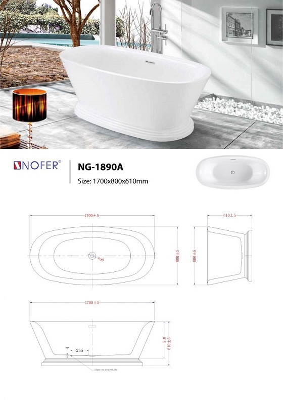 Kích thước là 1700*800*610 mm với chiều dài gấp đôi chiều rộng, NG – 1890A mang cho mình sự thon dài, gọn ghẽ. Dung tích khoảng 250 lít. Đủ đầy cho một lần tắm gội. Bạn hoàn toàn có thể thoải mái hoà mình vào làn nước ấm với không gian bồn rộng rãi.