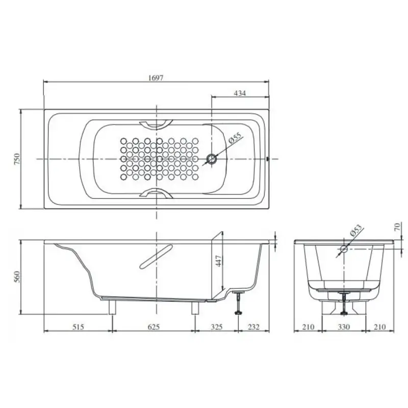 - Kích thước: 1697x750x560 mm (Xem chi tiết ở phần hướng dẫn lắp đặt).