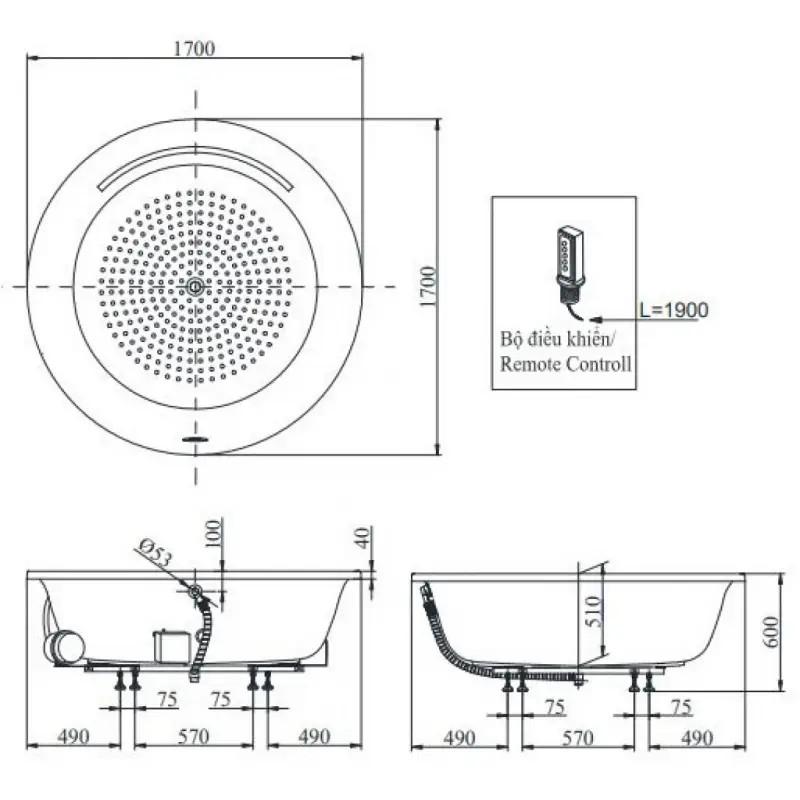 Bồn tắm TOTO PPYB1720HPTE ngọc trai 1.7M tròn