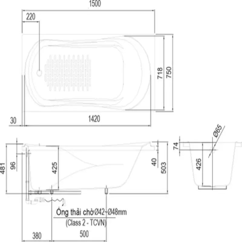 Bồn tắm xây Inax MBV-1500 galaxy dài 1.5M