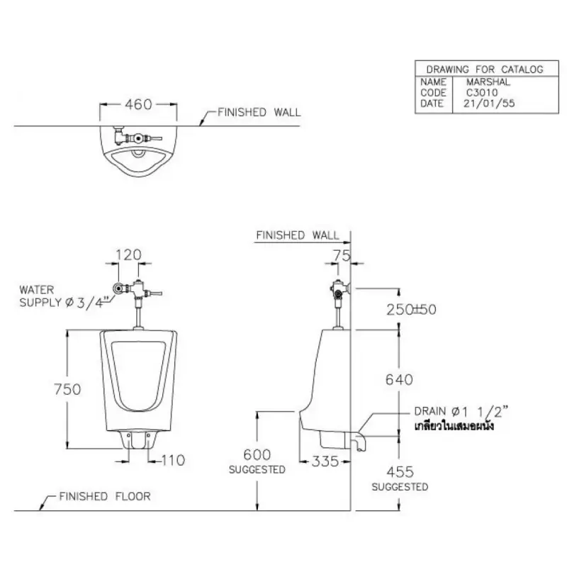 Bồn tiểu nam Cotto C3010 Marshal treo tường