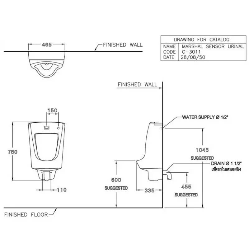 - Mọi thông số kỹ thuật bồn tiểu nam tự động Cotto C3011(DC) mang tính khách quan có thể có sai số của công cụ đo lường.