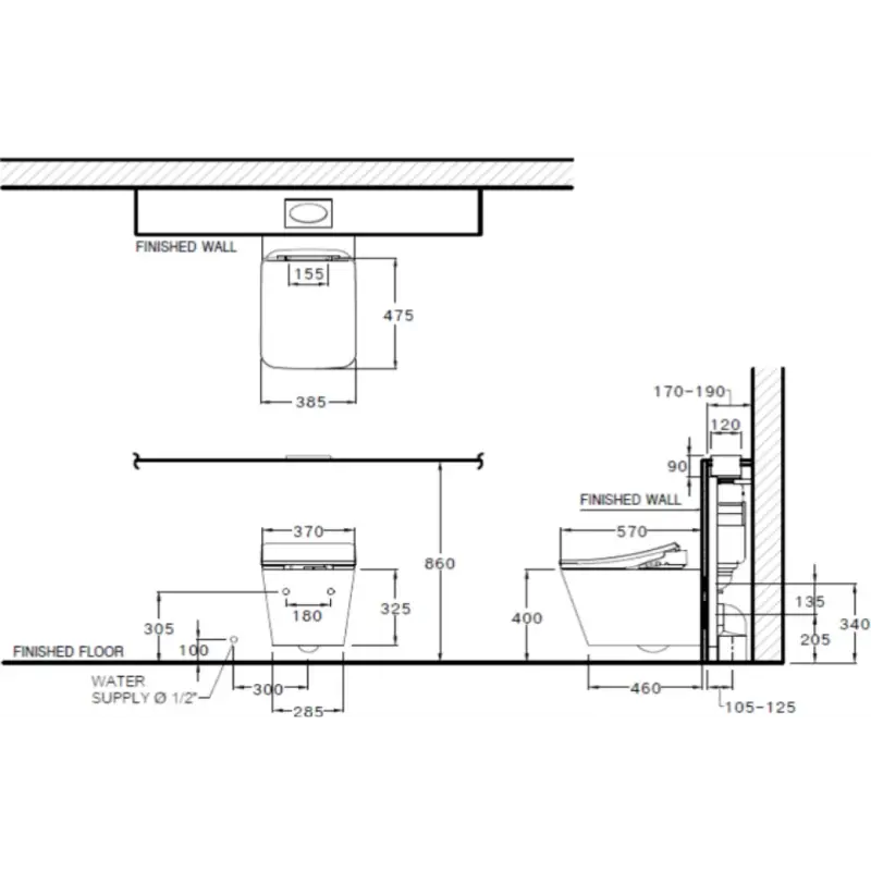 - Thiết kế liền khối, che khuyết điểm hoàn hảo: Ưu thế lớn nhất là phần thân sứ kéo dài từ trên xuống chạm mặt đất. Thiết kế này tạo ra một buồng chứa kín, giấu gọn toàn bộ hệ thống đường ống cấp nước, xi phông thoát thải và dây điện (nếu dùng van cảm ứng) vào bên trong. WC của bạn sẽ trông cực kỳ liền mạch và thẩm mỹ.