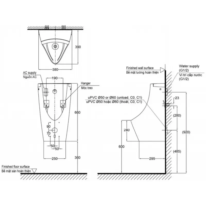 Bồn tiểu nam Toto USWN902AEV#XW cảm ứng điện 220V