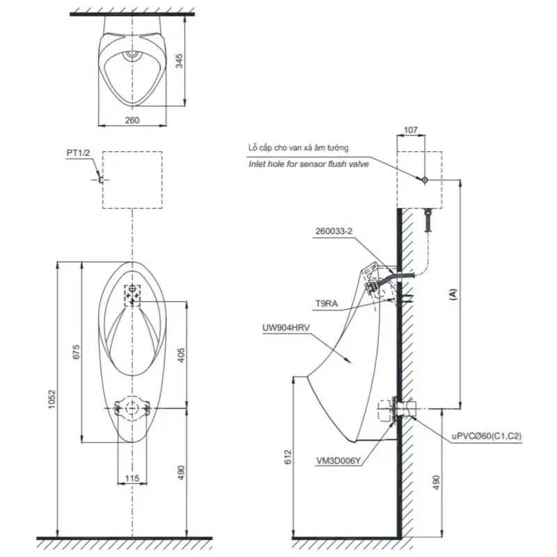 Thông Số Kỹ Thuật Chi Tiết Của Bồn Tiểu Nam Toto UT904H: