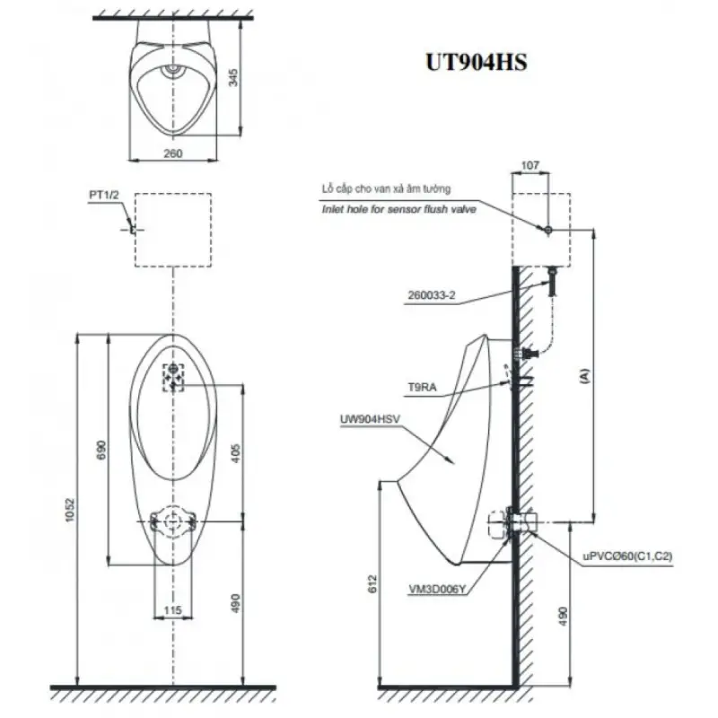 Thông Số Kỹ Thuật Chi Tiết Của Bồn Tiểu Nam Toto UT904HS: