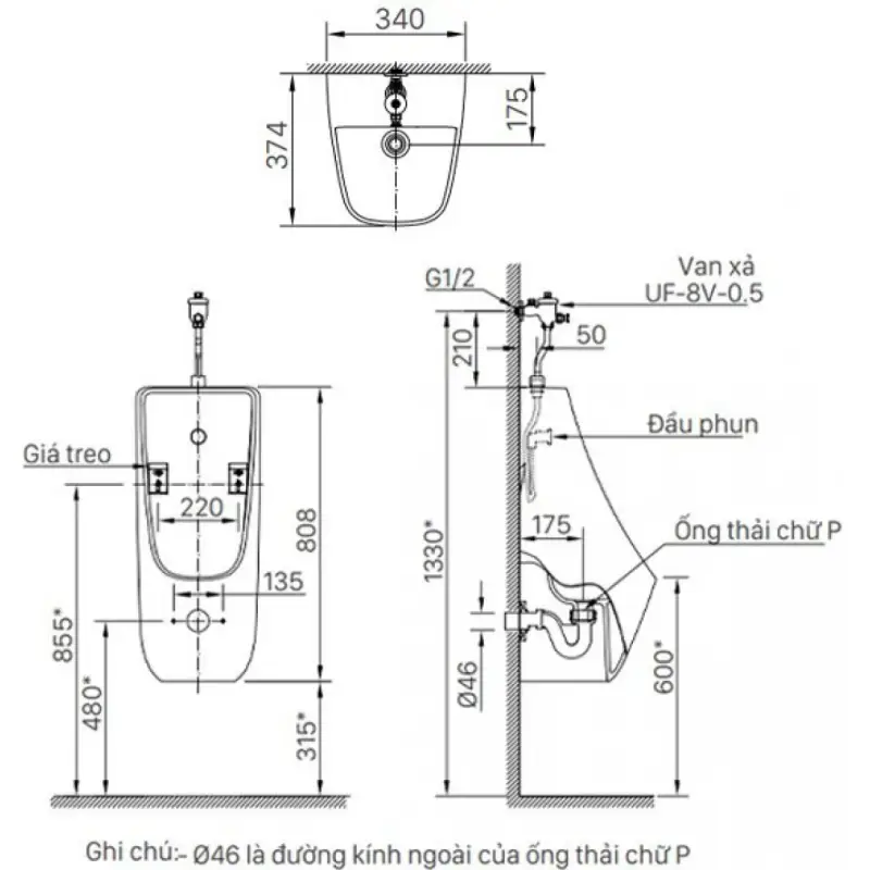 Thông Số Kỹ Thuật Chi Tiết Của Bồn Tiểu Nam Treo Tường Inax AU-468V:
