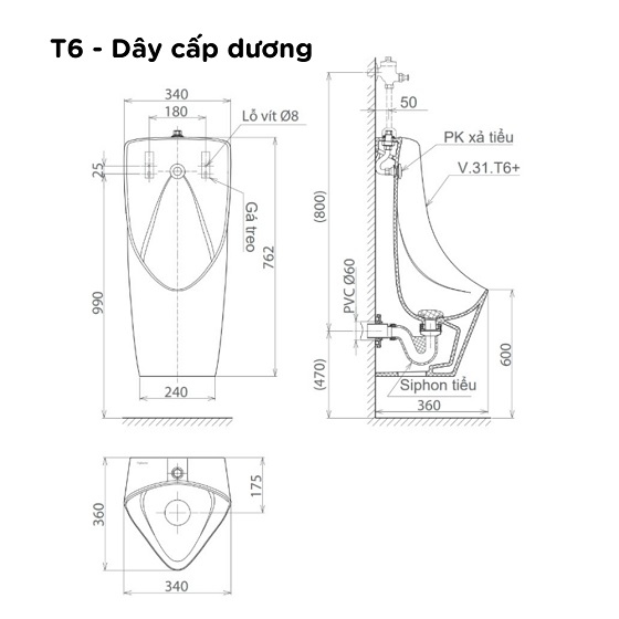 T6 (Cấp âm) – Phụ kiện tương thích: Van xả VG843