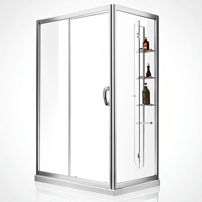 Bố trí nội thất bên trong: kệ khay, giá treo khăn tắm được phủ lớp chống ăn mòn, được lắp đặt bên trong phòng. Một lớp kính cường lực được thiết kế như một cánh cửa đóng mở bảo vệ các dụng cụ, đồ dung trên khay kệ