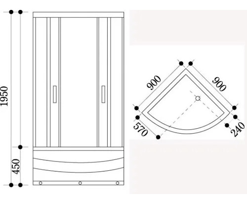 Kích thước (RxDxC): 900x900x2050 mm