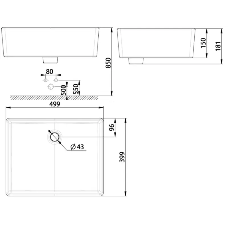 - Kích thước: 499 x 399 x 150 mm (Xem chi tiết ở phần hướng dẫn lắp đặt).