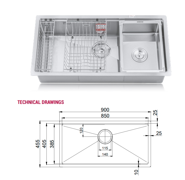 Phụ kiện đi kèm: Rổ inox , xi phông, chậu nhỏ