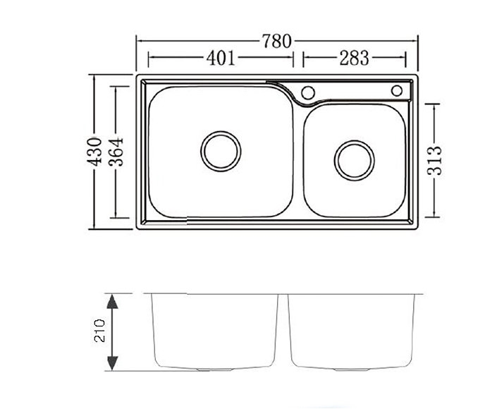 Chậu rửa bát 2 hố Clara CSS-01 (780x430x210mm)