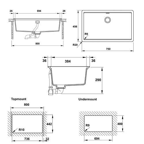 Chậu rửa bát đá 1 hố HAFELE HS20-GEN1S80 570.30.300