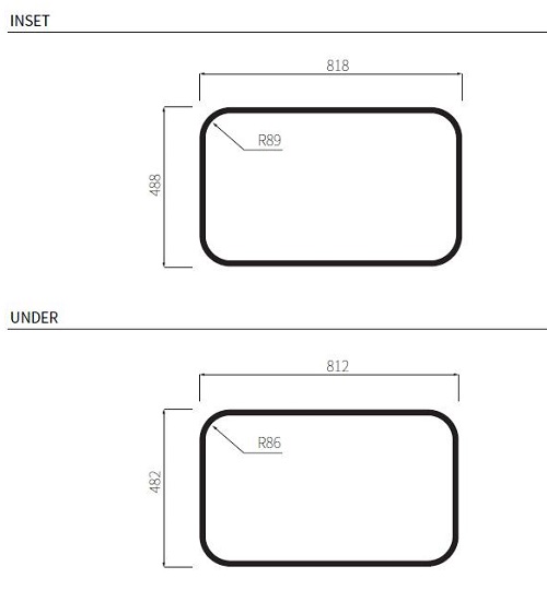 C(컷아웃사이즈) : 812*482*R86(UNDER) / 818*488*R89(INSET)