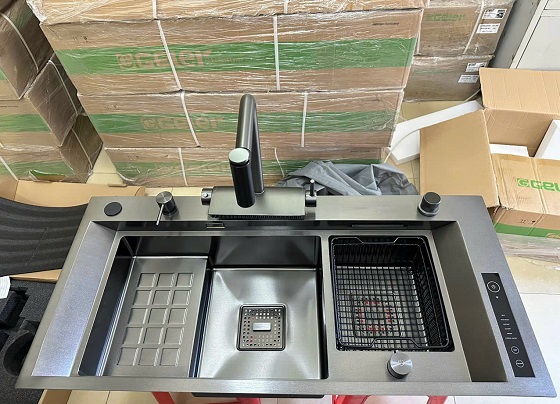 Chậu rửa Sus304 Nano + máy khử khuẩn Ozone công nghệ Hydroxyl + hệ thống thoát nước điều khiển vặn xả
