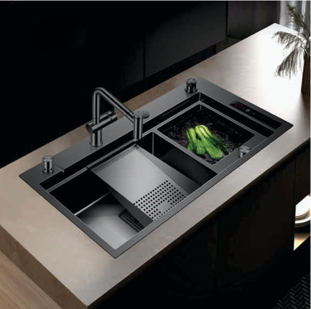 Chậu rửa Sus304 Nano + máy khử khuẩn Ozone công nghệ Hydroxyl + hệ thống thoát nước điều khiển vặn xả 😘