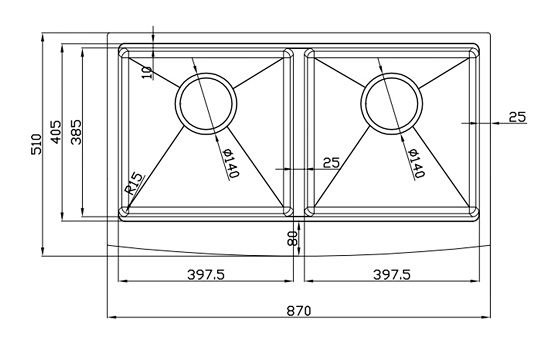 Vệ sinh lòng chậu dễ dàng với góc lượn R15