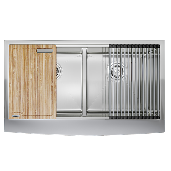 Dòng chậu hạ bậc – tích hợp công năng: thớt gỗ, rollmat, colander, bottom grid