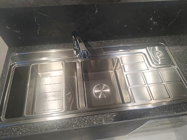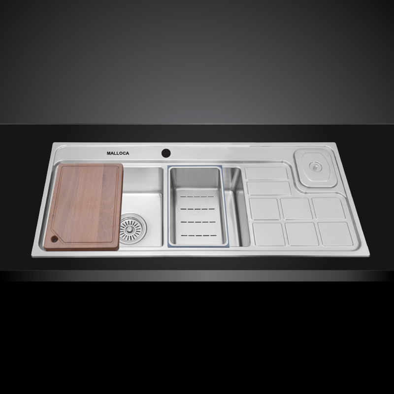 Chậu rửa bát 2 hố bàn có hố rác và cài dao