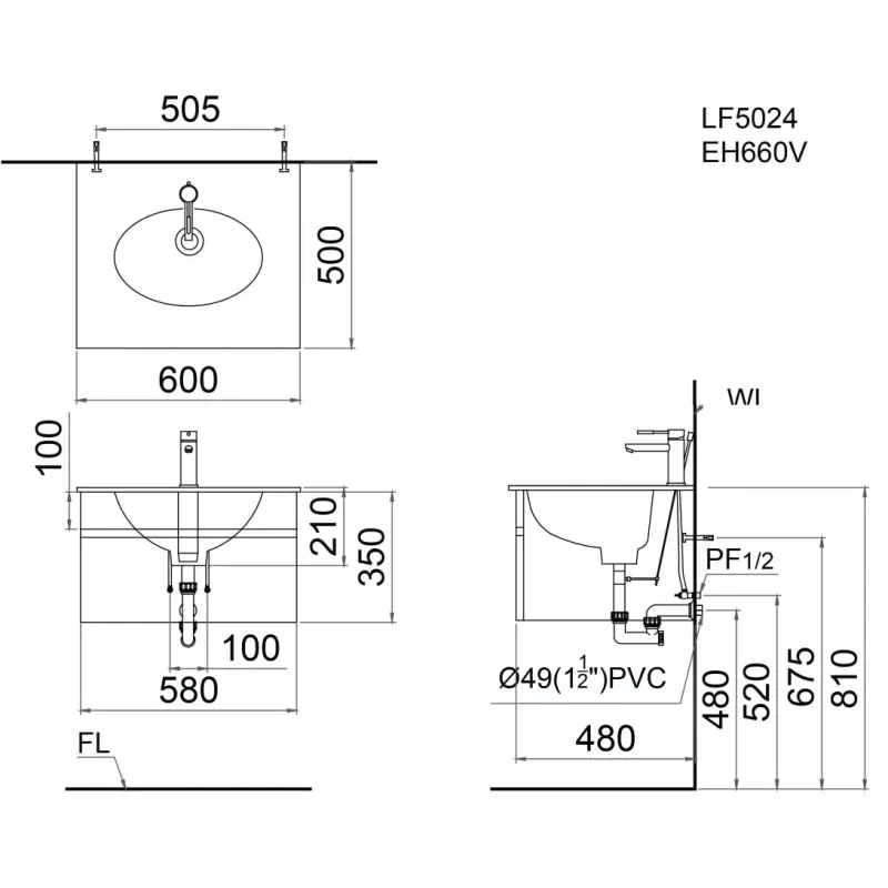 Chậu rửa lavabo Caesar LF5024 treo tường-đặt bàn 600×500 mm