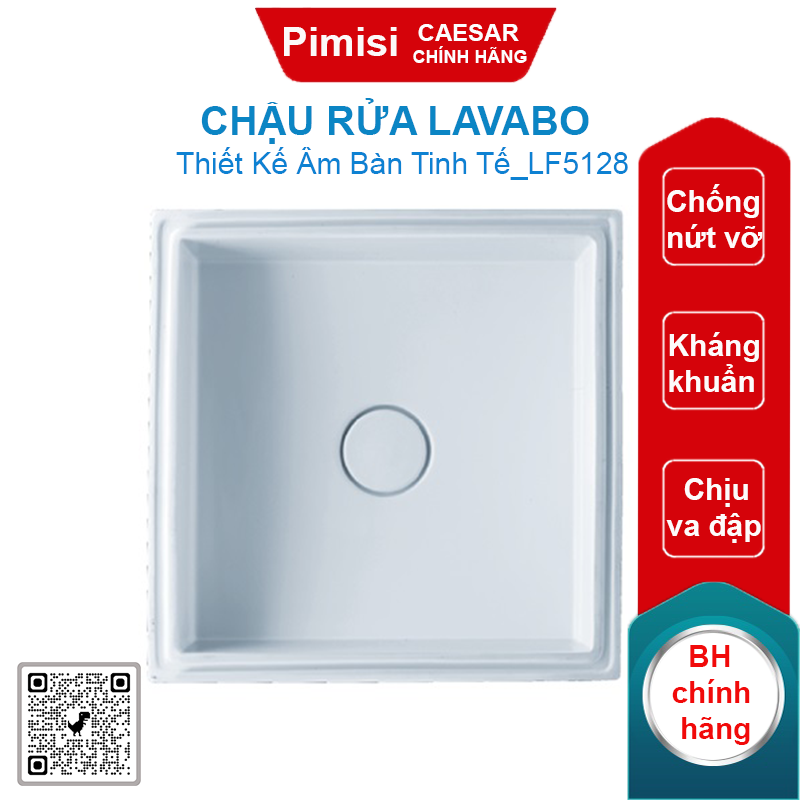 - Kiểu lắp đặt: Âm bàn.Chậu rửa lavabo Caesar LF5128 âm bàn hình vuông
