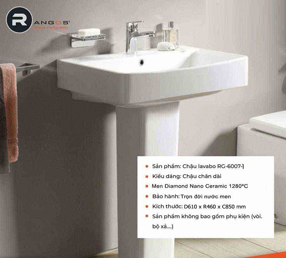 Chậu rửa lavabo chân dài Rangos RG-6007-1 (D610 x R460 x C850 mm)