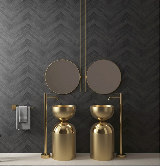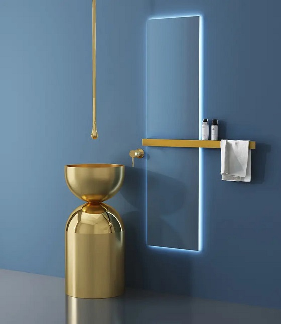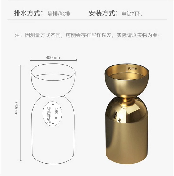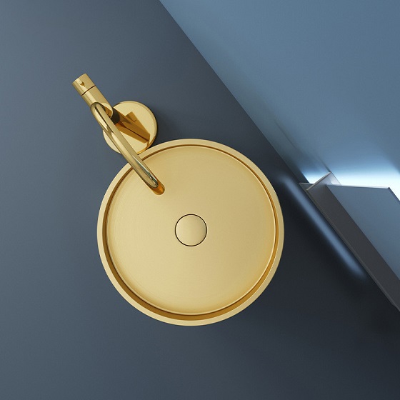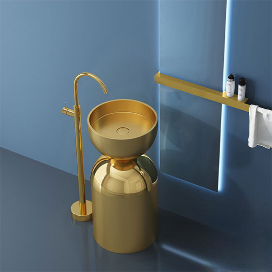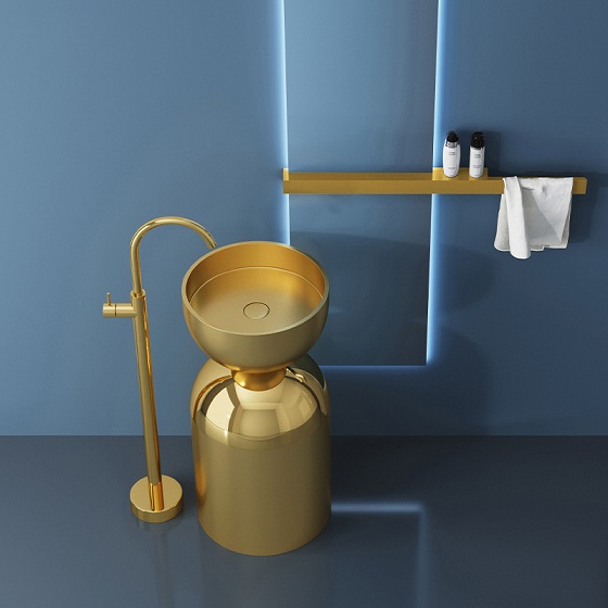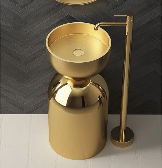 Chậu rửa lavabo chân đứng hình tròn màu vàng Inox 304 Miken MKC-8723G (Đặt hàng trước 7-15 ngày)