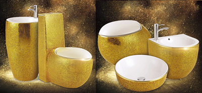 Chậu rửa lavabo chân đứng nghệ thuật mạ vàng sần C3966G (Đặt hàng 10-20 ngày)