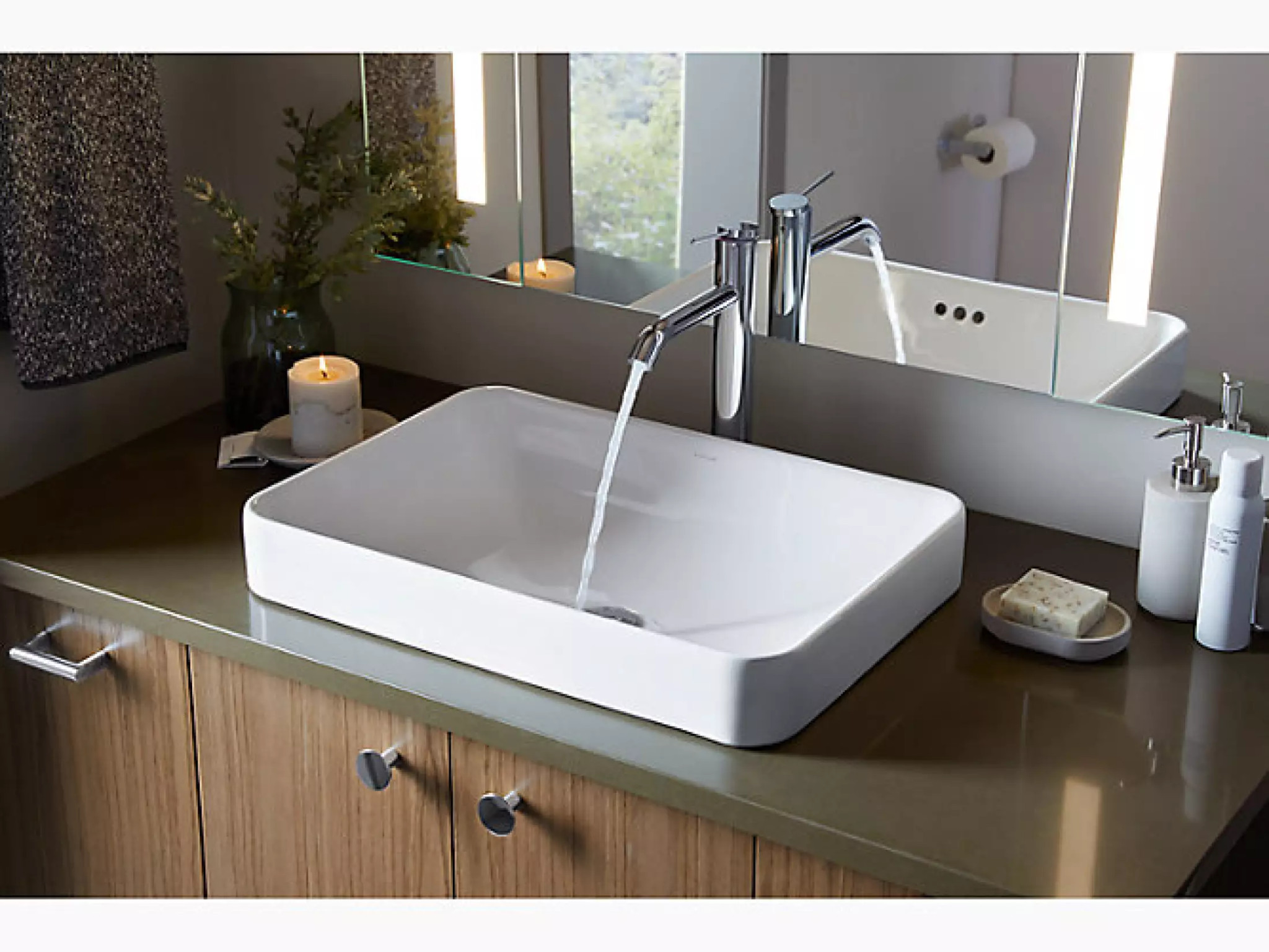 Mang nét bóng bấy và đương đại, chậu rửa hình chữ nhật kiểu đặt bàn Forefront