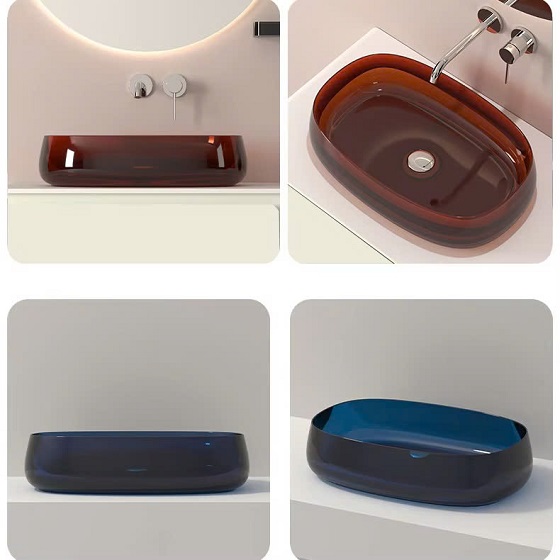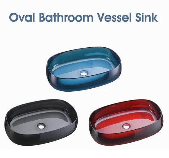 Chậu rửa mặt nghệ thuật trong suốt hình bầu dục