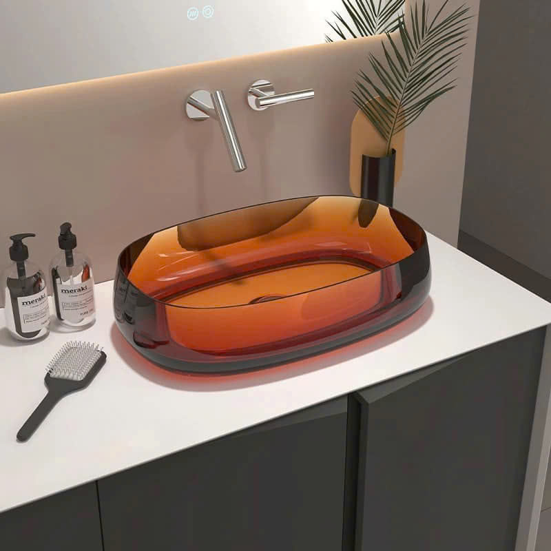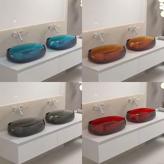 Chậu rửa mặt nghệ thuật trong suốt hình bầu dục