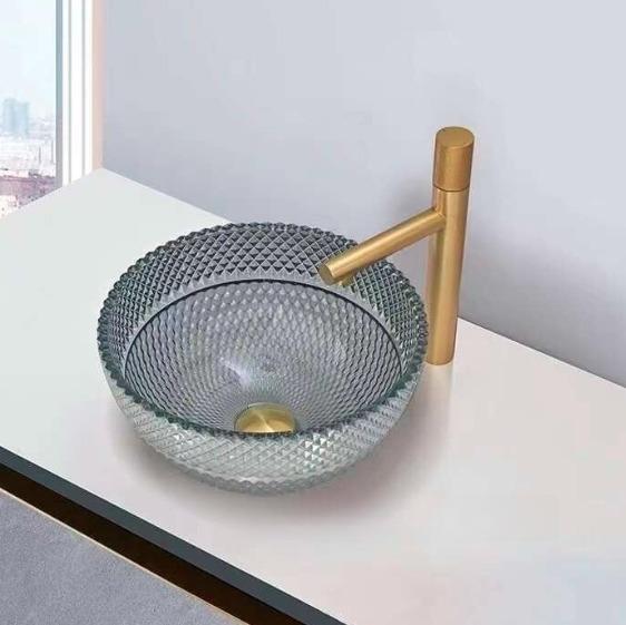 Được chế tác bằng thủy tinh đúc, chậu rửa đặt bàn với dáng vẻ sang trọng lịch lãm như viên ngọc quý nổi bật trong không gian phòng tắm của bạn.
