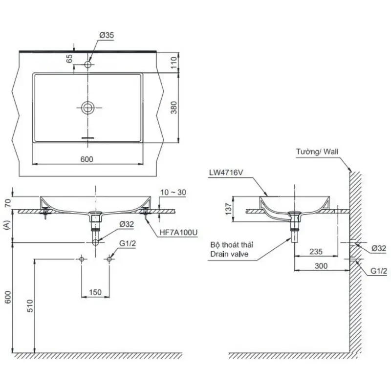 - Kích thước: 600 × 380 × 70mm (Chi tiết xem ở phần hướng dẫn lắp đặt).
